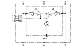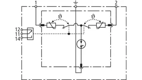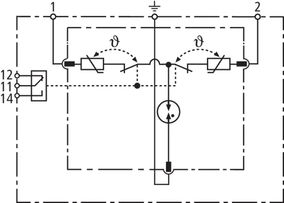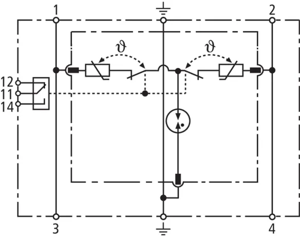 Parafoudre bipolaire comprenant une embase et un module de protection débrochable ; avec contact sec de télésignalisation. Utilisation dans des systèmes jusqu'à un courant de charge de 32 A possible.