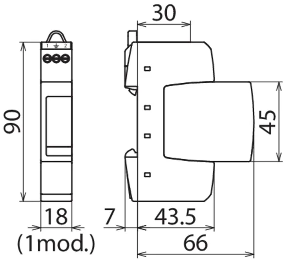 • Parafoudre type 3 bipolaire comprenant une embase et un module de protection débrochable