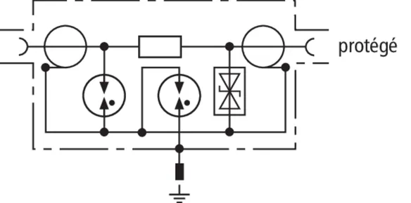 Parafoudre combiné à technologie Lambda/4 (quart d'onde), ne nécessitant pas de maintenance pour applications multi-fréquences. Le parafoudre peut également écouler des courants de foudre partiels élevés. La téléalimentation n'est pas possible car le parafoudre représente un court-circuit galvanique pour des signaux en basse fréquence.
