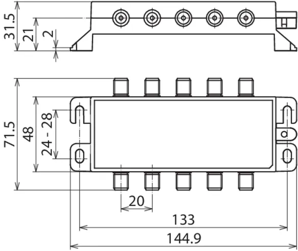 Parafoudre à cinq volets pour systèmes d'antennes de 75 ohms. Conception spéciale pour les distributeurs d'antennes SAT et les multi-interrupteurs. Le parafoudre répond aux exigences de blindage de la classe A selon la norme EN 50083-2.