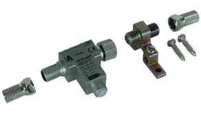 Parafoudre à cinq volets pour systèmes d'antennes de 75 ohms. Conception spéciale pour les distributeurs d'antennes SAT et les multi-interrupteurs. Le parafoudre répond aux exigences de blindage de la classe A selon la norme EN 50083-2.