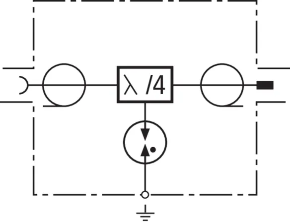 Parafoudre combiné à technologie Lambda/4 (quart d'onde), ne nécessitant pas de maintenance pour applications multi-fréquences. Le parafoudre peut également écouler des courants de foudre partiels élevés. La téléalimentation n'est pas possible car le parafoudre représente un court-circuit galvanique pour des signaux en basse fréquence.