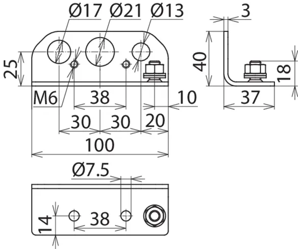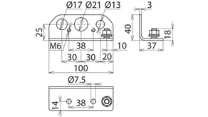 Approprié pour le montage d'un parafoudre DEHNgate, références 929 043 - 929 045. Perçage Ø16 mm avec protection anti-torsion.