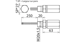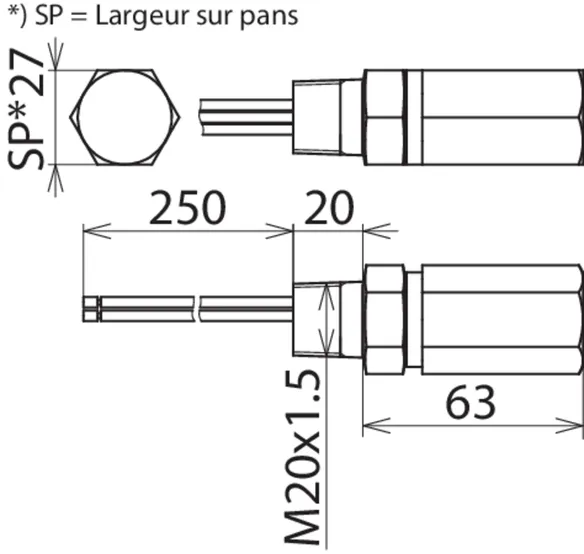 | Montage côté terrain/côté appareil | Filetage intérieur M20 x 1,5 / Filetage extérieur M20 x 1,5 |