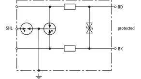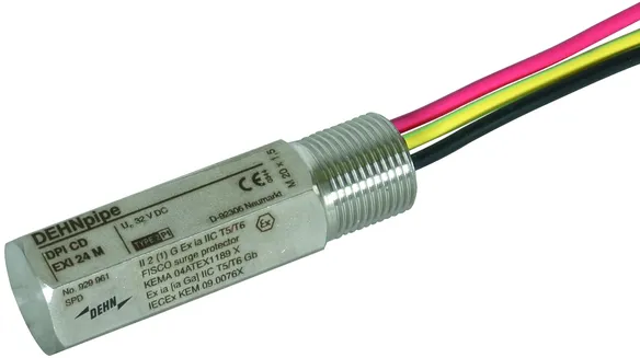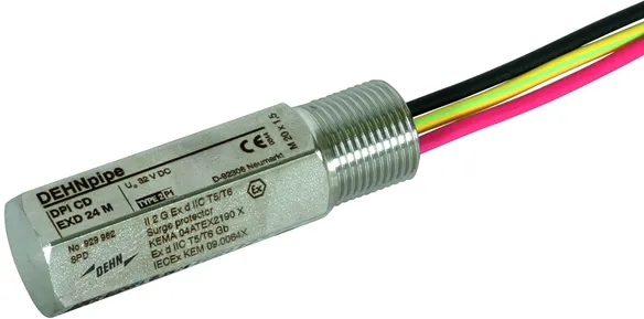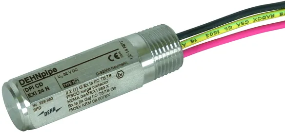 Parafoudre avec circuit de protection de faible capacité dans un coffret blindé antidéflagrant pour l'utilisation dans les zones à risque d'explosion pour la protection de circuits de mesure et de systèmes de bus. Niveau d'isolement > 500 V contre la terre. Certifications CSA, USA Hazloc.