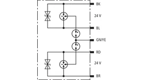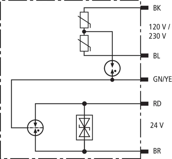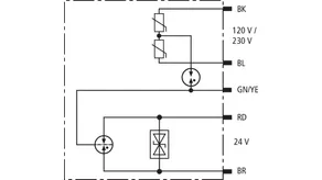 Parafoudre combiné pour côté énergie et côté données. Dans un coffret blindé antidéflagrant pour l’utilisation dans des zones à risque d’explosion 1 et 2, pour la protection d’une alimentatuin 120/230 V et d’une interface de données 24 V des équipements. Protection supplémentaire pour l’alimentation 120/230 V grâce au câblage en étoile anti-méprise.