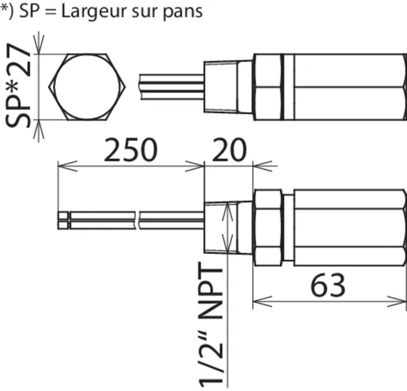 | Montage côté terrain/côté appareil | Filetage extérieur 1/2-14 NPT |