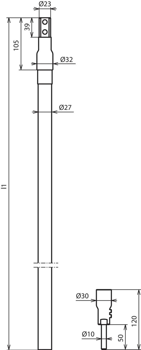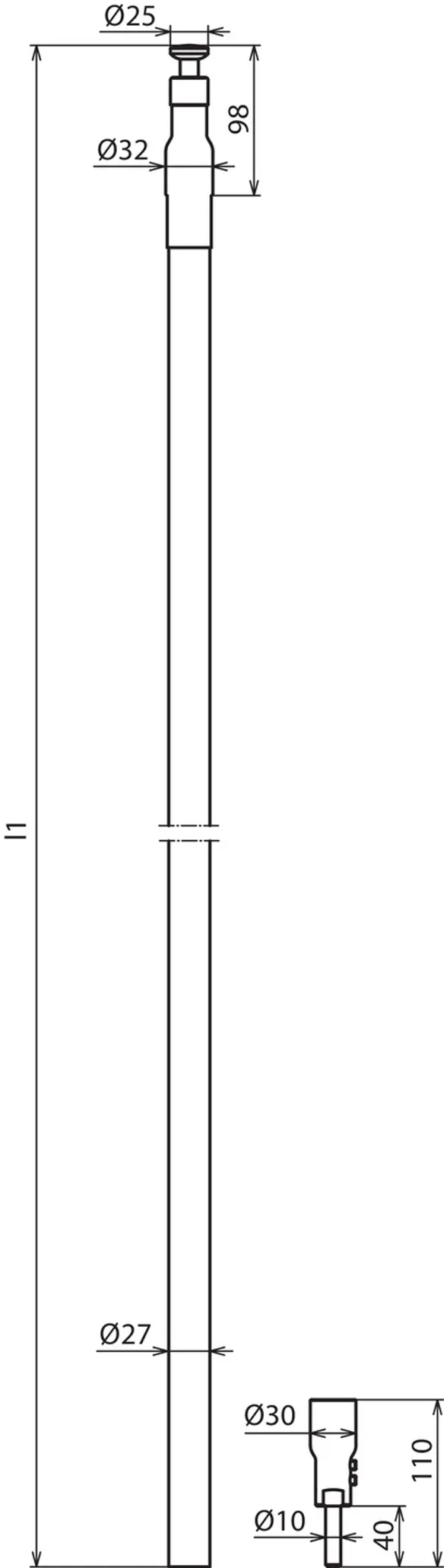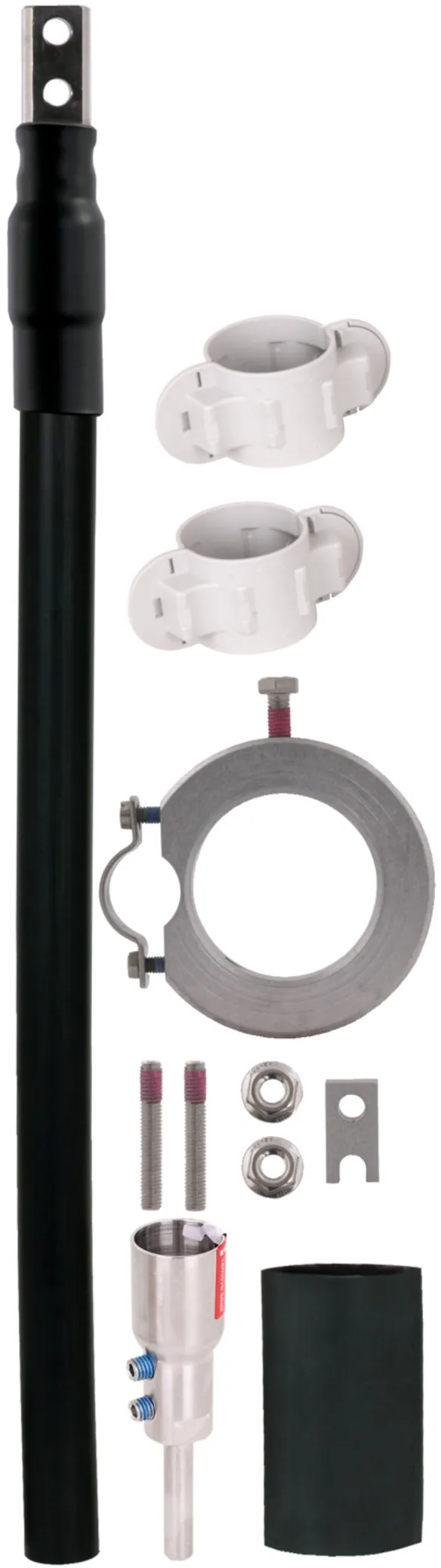 Kit de raccordement du conducteur HVI power aux tubes support HVI power PRV / Al comprenant des tiges filetées, une pièce de raccordement, une gaine thermorétractable et une bague de fixation avec un support de conducteur fendu (Ø27 mm) pour la terminaison (serre-conducteurs inclus).