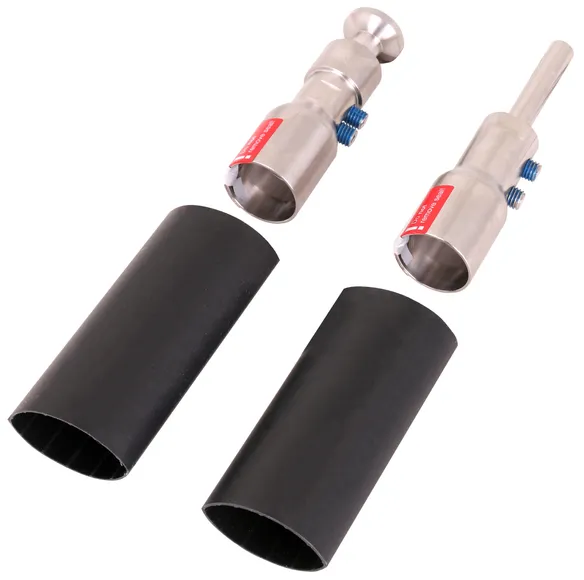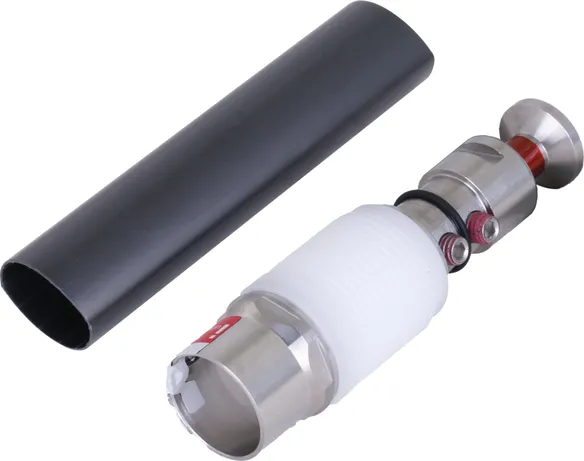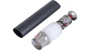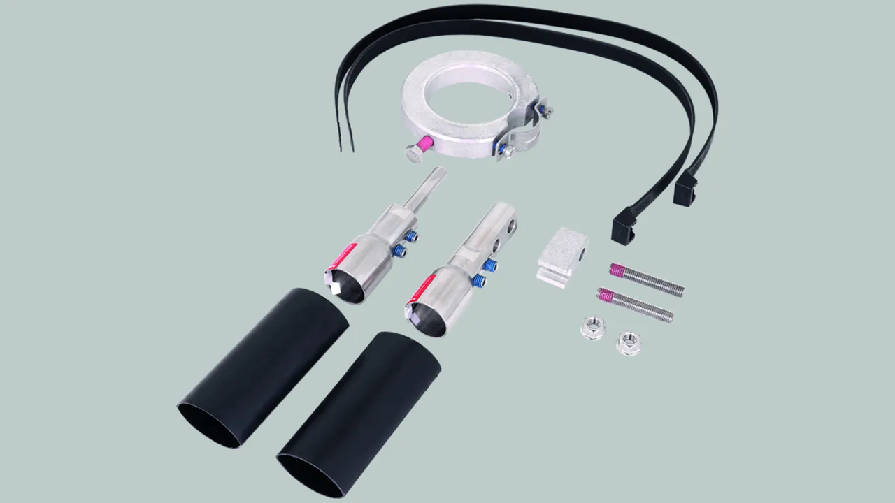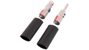 Eléments de raccordement pour la terminaison du conducteur HVI power aux deux extrémités, pour la terminaison du conducteur dans le tube support (pièce de tête) et pour le raccordement d'autres pièces du système de protection extérieure contre la foudre ou de l'installation de mise à la terre (deux gaines thermorétractables inclus).