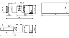 Raccordement boulon Ø10 mm, L 50 mm