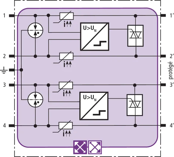 - Utilisation selon le concept des zones de protection contre la foudre aux interfaces 0A – 2 et plus haut
