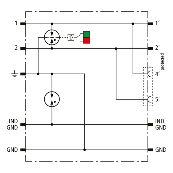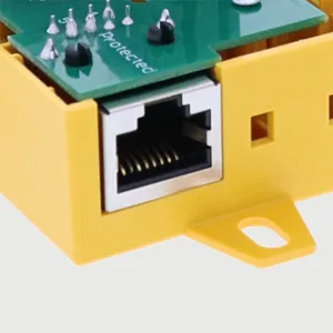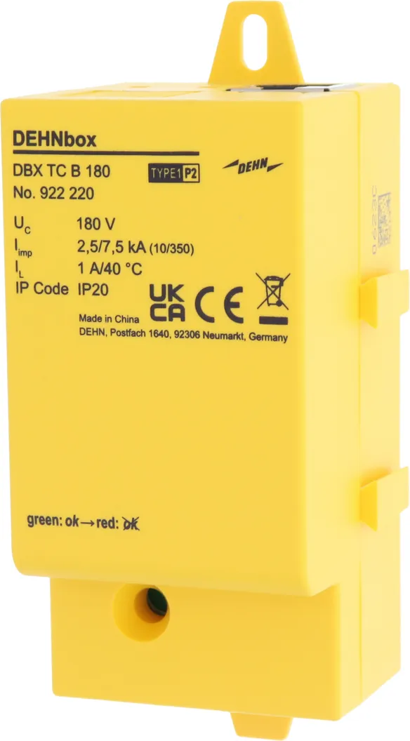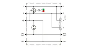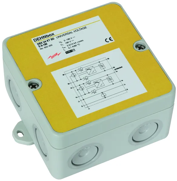 Parafoudre compact et peu encombrant dans un boîtier en plastique avec technologie de connexion push-in et indication d'état pour protéger une paire à interfaces symétriques, en particulier les interfaces de télécommunication jusqu'à VVDSL et G.fast (jusqu'à 1 Gbit/s). Mise à la terre directe / indirecte du blindage possible. Connexion d'une paire ou d'un câble patch avec prise RJ45 en sortie.