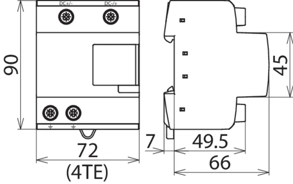 | Courant de choc de décharge (10/350 µs) [DC+/DC- -> PE] (Itotal ) | 12,5 kA |