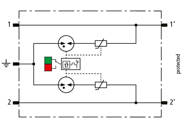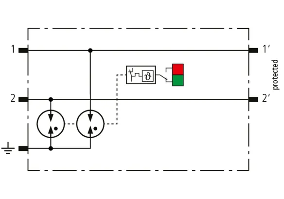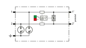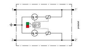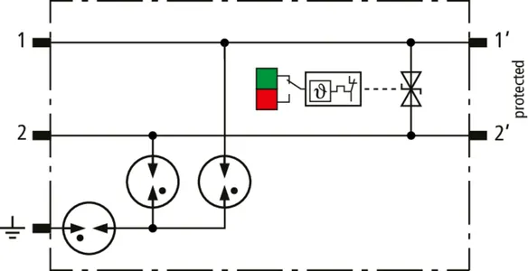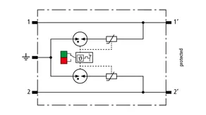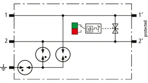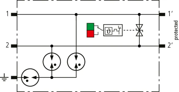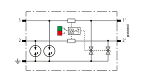 Parafoudre débrochable peu encombrant d'une largeur de 6 mm et technologie de connexion push-in avec indication d'état en façade. Protection de deux conducteurs partageant un potentiel de référence commun ou une interfaces asymétriques.