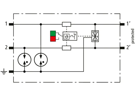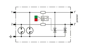 - Capacité d'écoulement de 3 kA (10/350 µs), 10 kA (8/20 µs)
