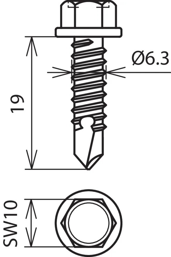 Auto-taraudeuse avec tête hexagonale pour le raccordement des barrettes de pontage, des tresses de pontage ou des câbles de pontage, par ex. aux couvertines (pour les épaisseurs ≥ 2 mm).