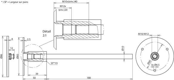 Avec axe de raccordement (l = 180 mm, Ø10 mm).
