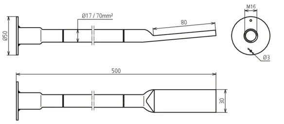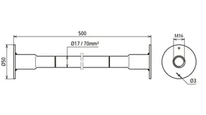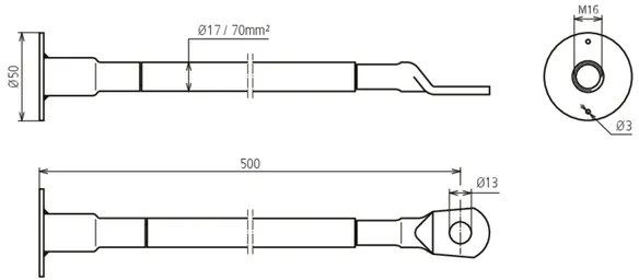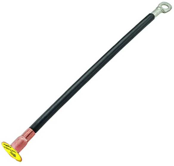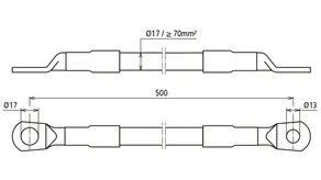 Les ponts de mise à la terre sont conçus pour assurer la mise à la terre, le circuit de retour ainsi que la liaison équipotentielle dans la zone d’utilisation des voies ferrées. Cette variante destinée à la mise à la terre des tubes de grand diamètre est utilisée pour les fondations sur pieux et les tubes de grand diamètre. Le produit est composé d’un câble en cuivre avec une douille pressée et une plaque de raccordement en INOX avec perçage intégré pour la fixation du coffrage à une extrémité, ainsi que d’une cosse de câble à l’autre extrémité. La cosse de câble permet de créer un raccordement qui résiste aux courants de court-circuit pour les fondations sur pieux et sur les tubes de grand diamètre. La flexibilité du câble facilite le montage dans l’armature pour l’utilisateur. De plus, ce pont de mise à la terre possède une homologation technique de DB Netz AG, ce qui garantit une sécurité de planification élevée.