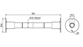 Les longueurs spéciales sont disponibles sur demande : jusqu’à 500 mm de longueur totale par incréments de 50 mm, à partir de 500 mm de longueur totale par incréments de 100 mm.