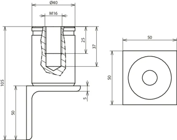 | Dimension, équerre (L x l x t) | 50 x 50 x 5 mm |