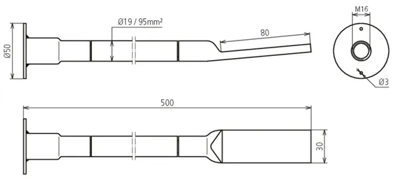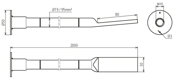 Les ponts de mise à la terre sont conçus pour assurer la mise à la terre, le circuit de retour ainsi que la liaison équipotentielle dans la zone d’utilisation des voies ferrées. Cette variante destinée à la mise à la terre des tubes de grand diamètre est utilisée pour les fondations sur pieux et les tubes de grand diamètre. Le produit est composé d’un câble en cuivre avec une douille pressée et une plaque de raccordement en INOX avec perçage intégré pour la fixation du coffrage à une extrémité, ainsi que d’une cosse de câble à l’autre extrémité. La cosse de câble permet de créer un raccordement qui résiste aux courants de court-circuit pour les fondations sur pieux et sur les tubes de grand diamètre. La flexibilité du câble facilite le montage dans l’armature pour l’utilisateur. De plus, ce pont de mise à la terre possède une homologation technique de DB Netz AG, ce qui garantit une sécurité de planification élevée.