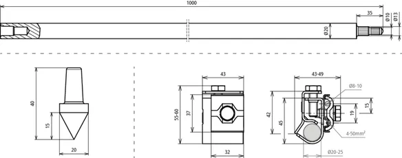 Version (Pointe d’extrémité) pour piquet de terre Ø20 mm.