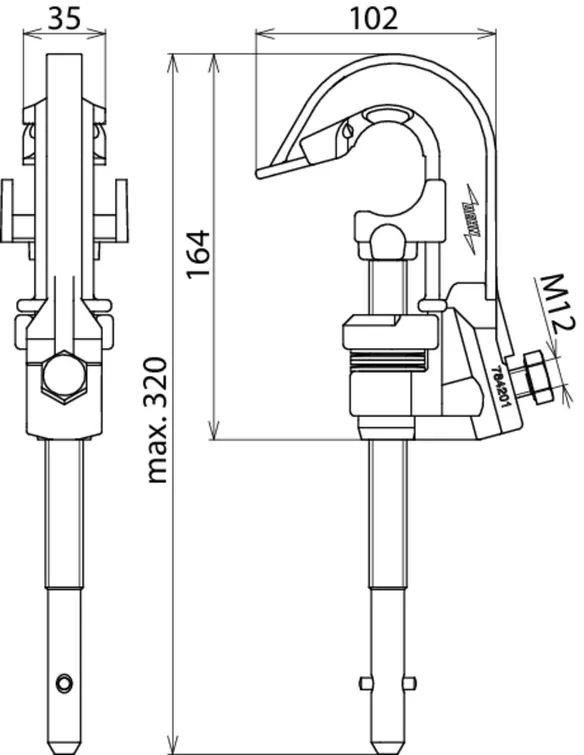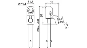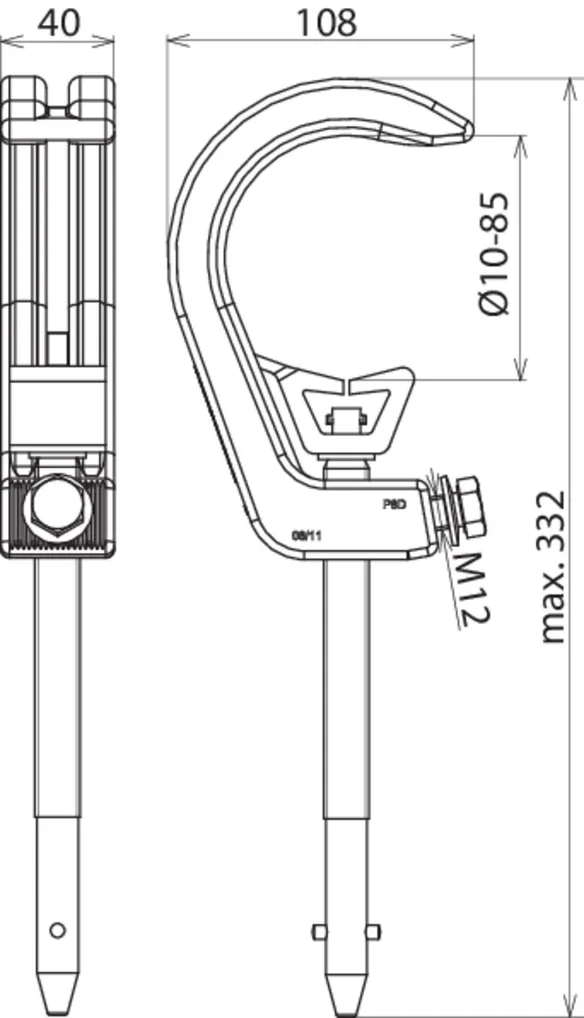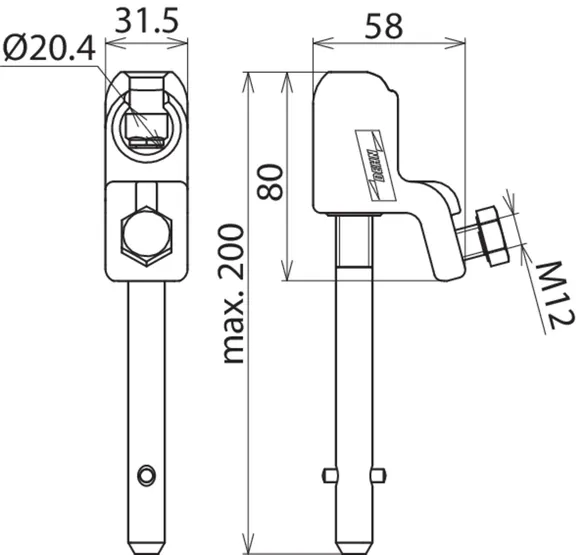 - Avec une protection contre la torsion, le type PK1 ou PK2 et une longue broche à goupille