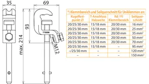| Pour point fixe à tête sphérique Ø | 20 / 25 mm |