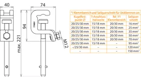 | Pour une largeur des boulons de raccordement T | 15 mm |