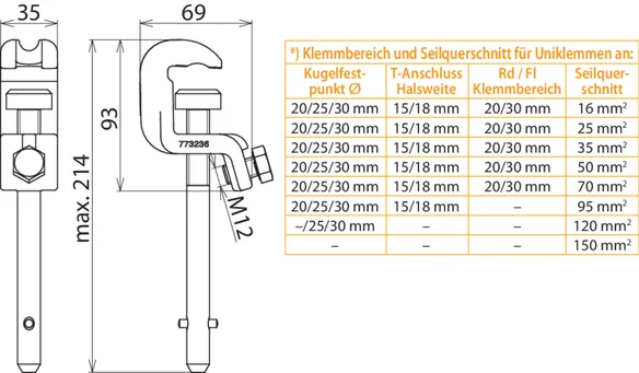 | Pour section de câble Cu | 16 ... 150 mm2 |