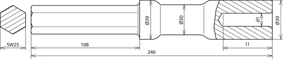 | Adaptateur | hexagonal S25 x 108 mm |