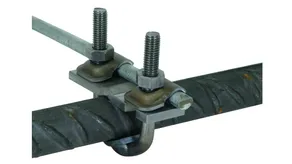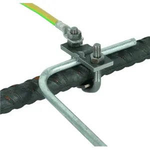 Avec pièce de serrage pour conducteurs rond ou point de prise de terre inséré dans le béton.