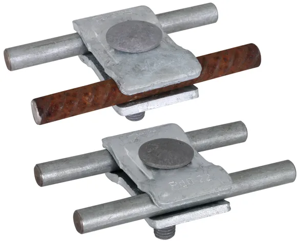 Bornes pour la connexion de treillis soudés pour béton armé ou d’armatures composées de conducteurs ronds ou plats.