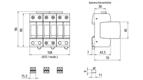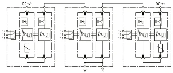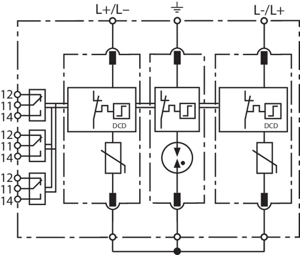 Parafoudre combiné modulaire pour applications CC; avec contact de télécommunication sans potentiel.