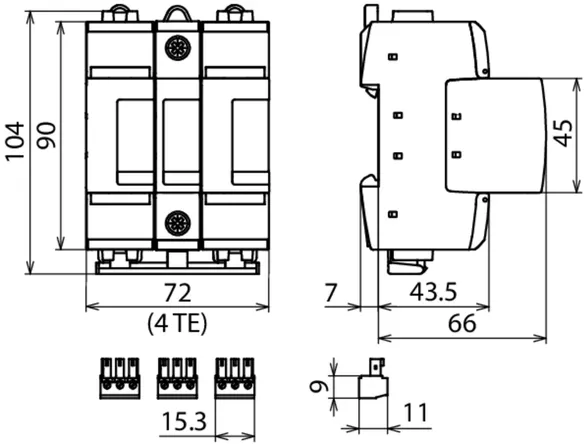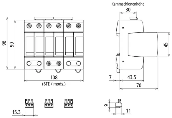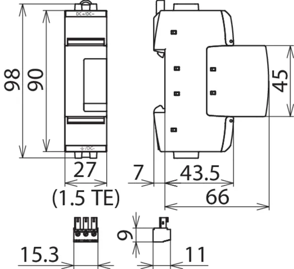 Pour application DC, largeur: 1,5 modules