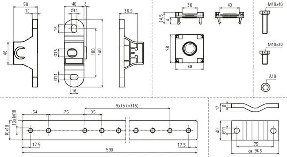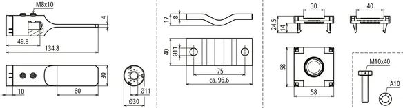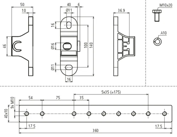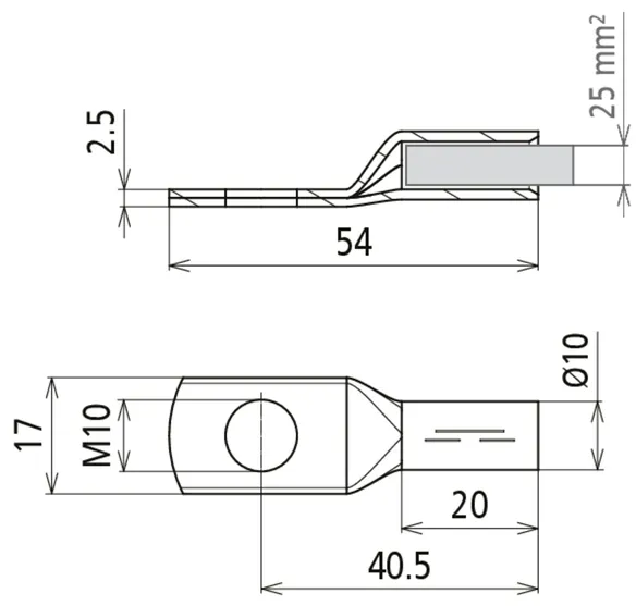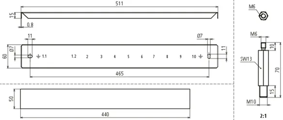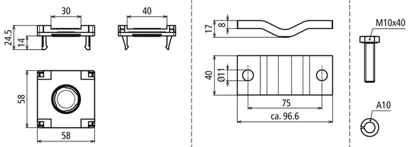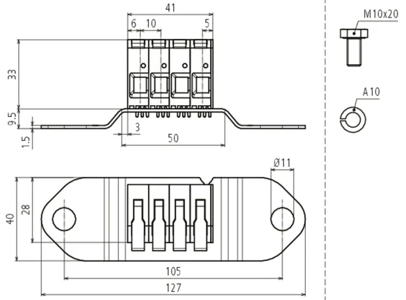 | Raccordement Rd/Pl | 1x conducteur plat 30/40 mm ou 1x conducteur rond 10 mm |