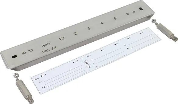 Adaptateur pour barres de liaison équipotentielle sans étincelles PAS EX pour le raccordement facile d’un conducteur plat. Pour une utilisation dans les zones Ex 1 et 2 (gaz, vapeurs, brouillards) jusqu’au groupe d’explosion IIC ainsi que les zones Ex 21 et 22 (poussières). Utilisation autorisée en intérieur et en extérieur.