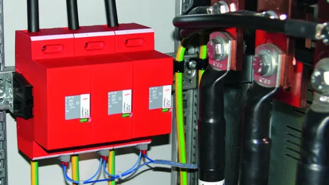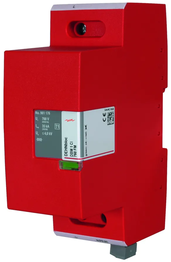 - Parafoudre à base d'éclateurs à air avec fusible intégré et une tenue au courant de foudre, dans un boîtier compact