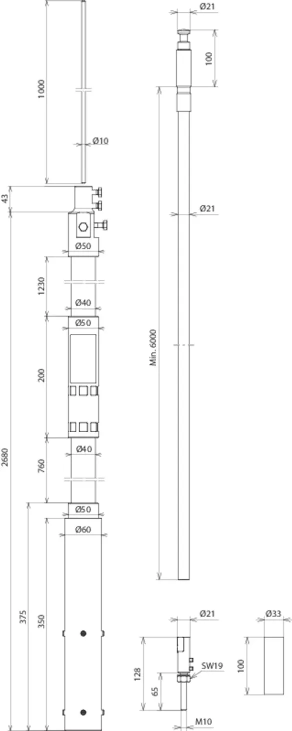 Conducteur HVI light plus dans le tube support 2680 mm avec pointe de capture 1000 mm