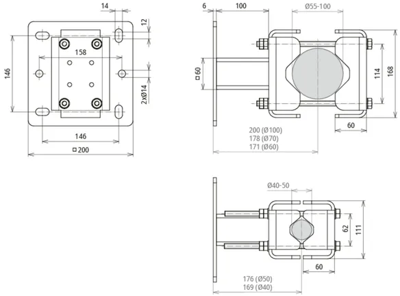 | Plage de serrage (Ø mât) | 40-50 mm (vertical) / 55-100 mm (transversal) |