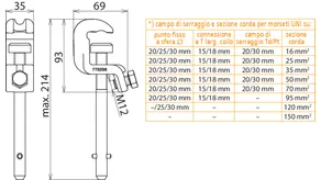 | *) Vedi tabella del campo di serraggio e sezione trasversale massima della corda per pinze universali | |