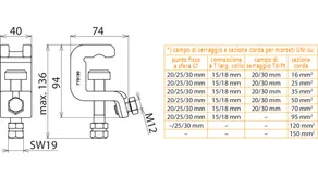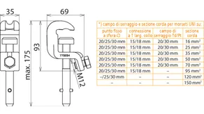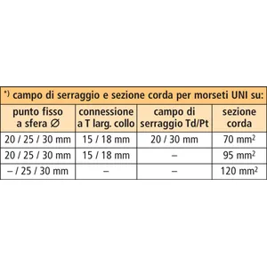 | *) vedi tabella campo di serraggio e sezione corda massima per pinze universali | |