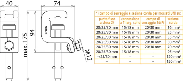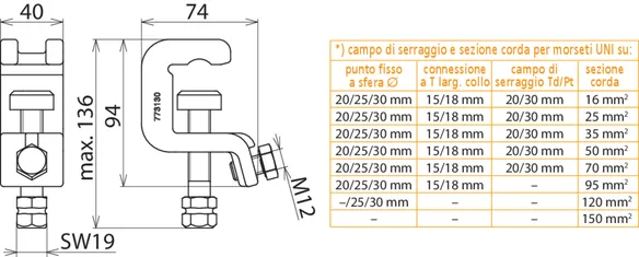 | Per sezione corda Cu | 16 ... 150 mm2 |